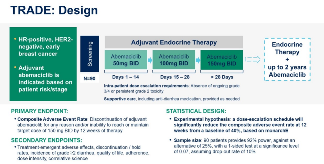 TRADE研究-评估早期HR+/HER2-乳腺癌中阿贝西利剂量递增耐受性的II期临床试验[1]