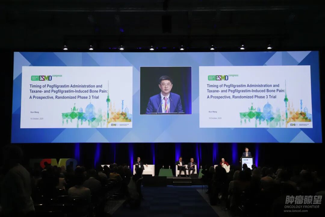 编者按:2025年ESMO年会上,广东省人民医院王坤教授代表团队做出了大会口头报告,公布了一项关于硫培非格司亭(Pegfilgrastim)给药时机与骨痛关系的前瞻性III期研究数据。该研究聚焦于紫杉类化疗后预防性应用长效升白针引发的骨痛管理难题,创新性地探索了不同给药时机对患者疼痛程度的影响。研究结果显示,化疗后72小时给予硫培非格司亭可显著降低患者骨痛的发生率与严重程度,且不影响其保护中性粒细胞的疗效。为此,肿瘤瞭望特邀王坤教授深入解读该研究源于中国临床实践的初衷、其对提升患者生活质量的现实意义,以及中国方案为全球肿瘤支持治疗带来的重要启示。