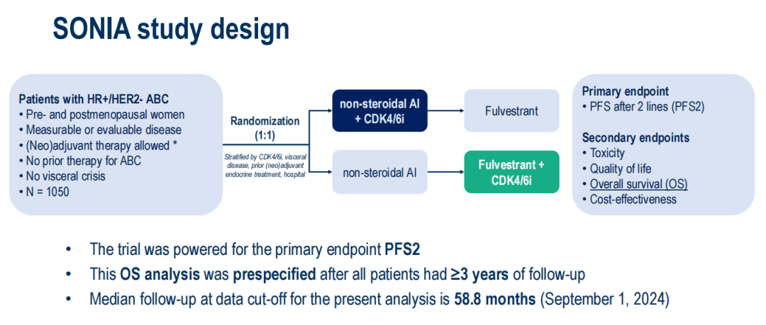 CDK4/6抑制剂在HR+/HER2-晚期乳腺癌一线与二线应用比较:SONIA试验(NCT03425838)的总生存期分析