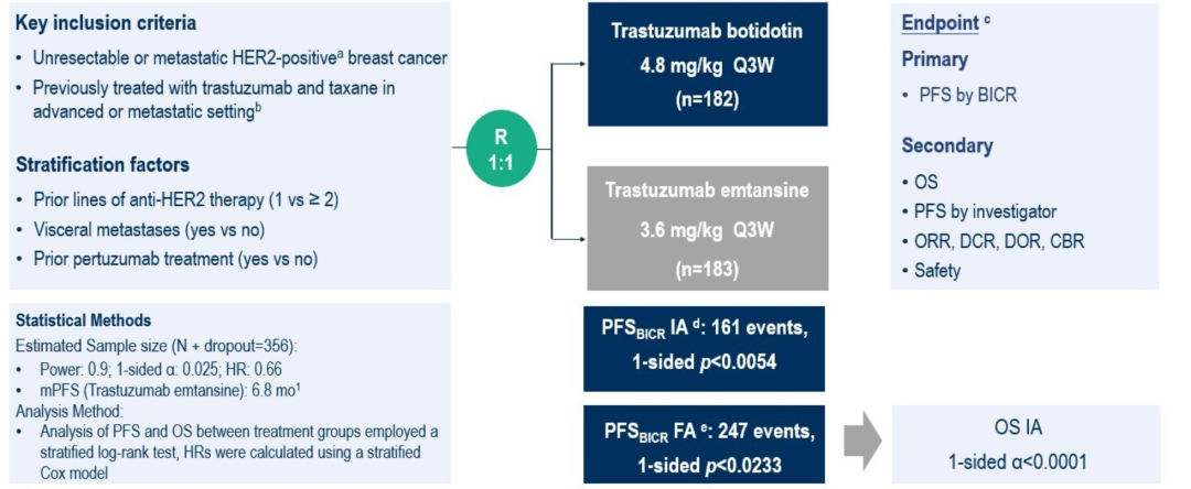 [1]Xichun Hu,Jian Zhang,Quchang Ouyang,et al.LBA24-Trastuzumab botidotin vs trastuzumab emtansine(T-DM1)in HER2-positive unresectable or metastatic breast cancer:Results from a randomized phase III study.2025 ESMO LBA24.
