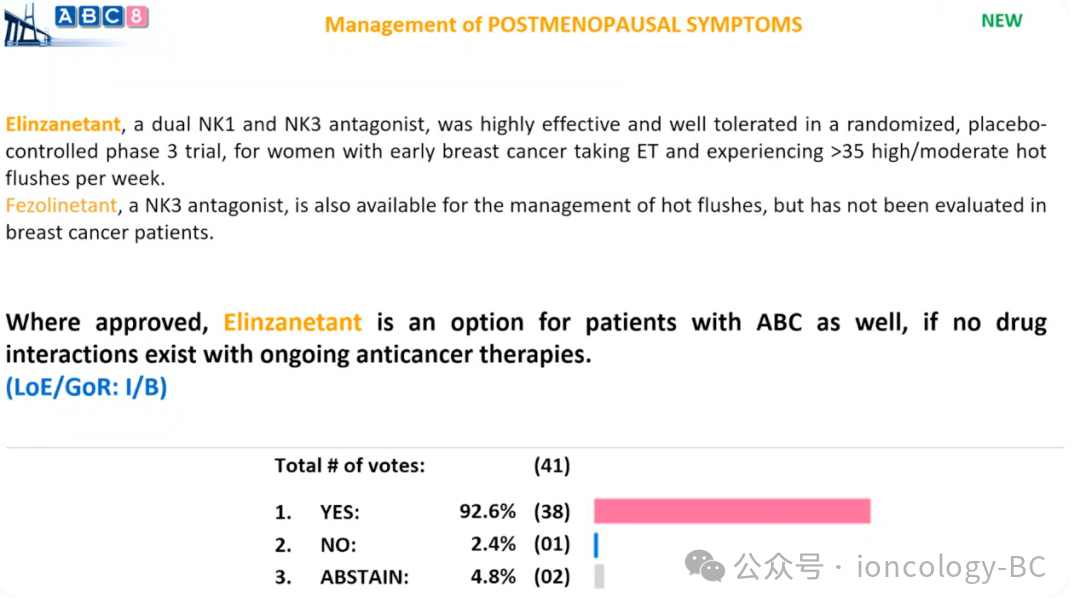 在获批的情况下,如果与正在进行的抗癌治疗不存在药物相互作用,Elinzanetant也可作为晚期乳腺癌(ABC)患者的选择。