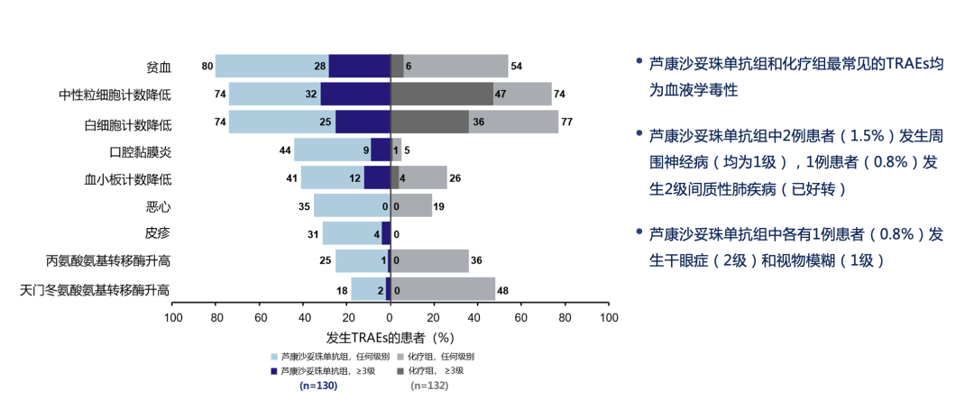骨髓抑制是传统化疗及部分ADC难以回避的问题,常伴随中性粒细胞下降、血小板减少,增加感染与出血风险,甚至导致治疗中断。而sac-TMT在临床研究中显示出较轻的骨髓抑制程度,≥3级中性粒细胞减少和血小板减少发生率低于传统化疗,有助于患者维持相对稳定的血象水平,保障治疗连续性。