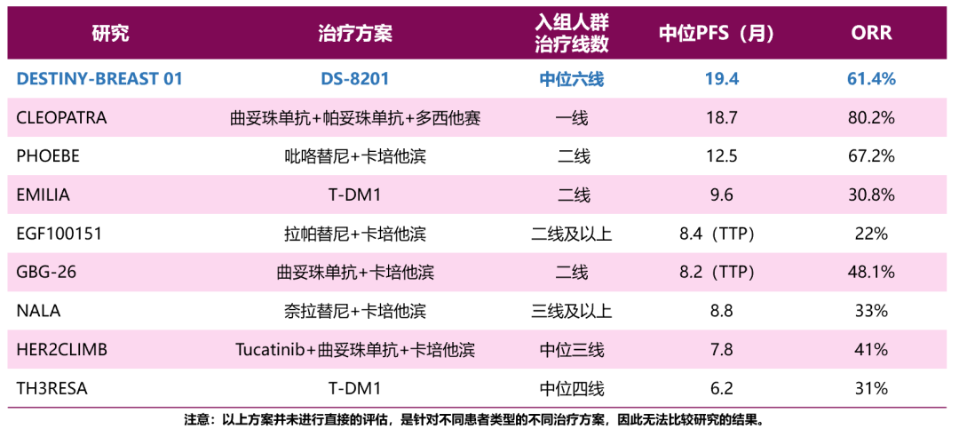 娴花映水初惊艳,ADC药物款款而来。T-DM1已在国际取得晚期二线治疗和早期单靶新辅助治疗失败后强化辅助治疗的适应症,因其在国内仅批准早期适应症,上市晚、价格高、辅助治疗较曲帕双靶优势不突出,故可及性不足,期待其在国内早日获批晚期适应症,提高可及性,惠及更多患者。ADC新秀DS-8201在2020年风光无两,见刊《NEJM》,登临SABCS,已发表的DESTINY-Breast01研究、进行中的DESTINY-Breast05、06、07、08研究万众瞩目。DESTINY-Breast 01显示,在T-DM1等多线治疗失败后,DS-8201仍能为患者带来长达19.4个月的mPFS。我国也正在研发类似的ADC药物,然需知国内外医疗境况相异,欧美更倾向于曲妥珠单抗、帕妥珠单抗、T-DM1治疗失败后再选用新的ADC,而我国帕妥珠单抗、T-DM1并无晚期适应症,更多晚期患者面临的是拉帕替尼或吡咯替尼治疗失败的境地,故而我国新的ADC研究中,将会取得更具中国特色的曲帕双靶治疗失败或TKI失败后的人群ADC疗效数据,更令人憧憬。