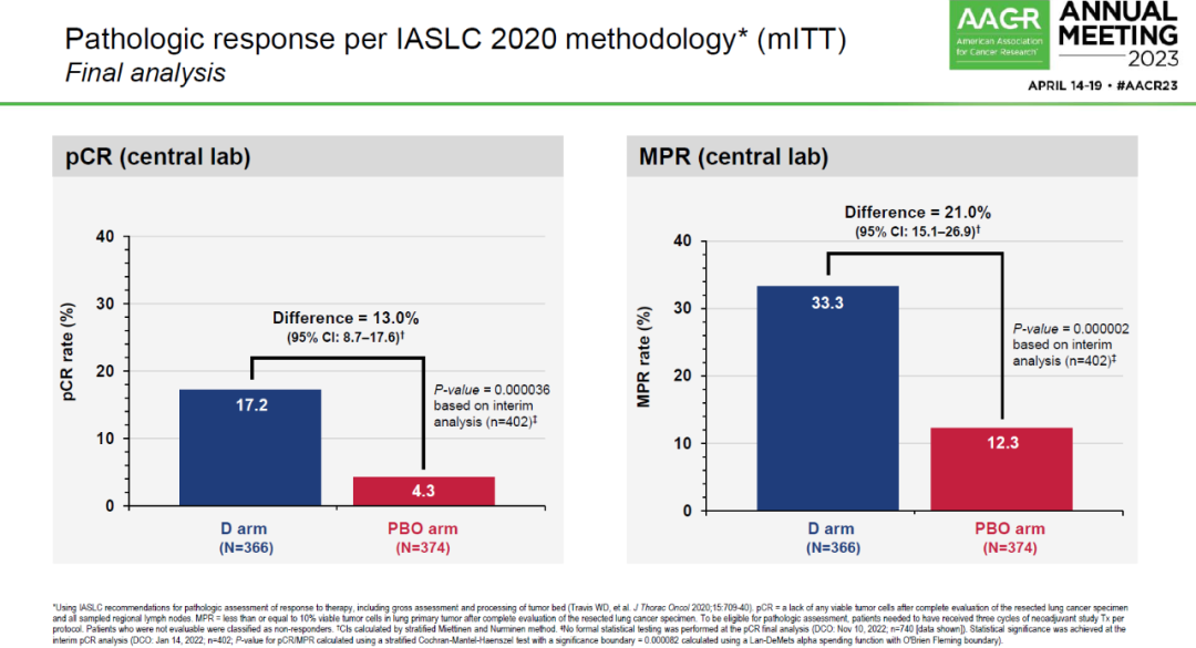 2.Durvalumab-based treatment before and after surgery improved outcomes for patients with resectable non-small cell lung cancer.Press release.AACR.April 16,2023.Accessed April 16,2023.https://aacr.ent.box.com/
