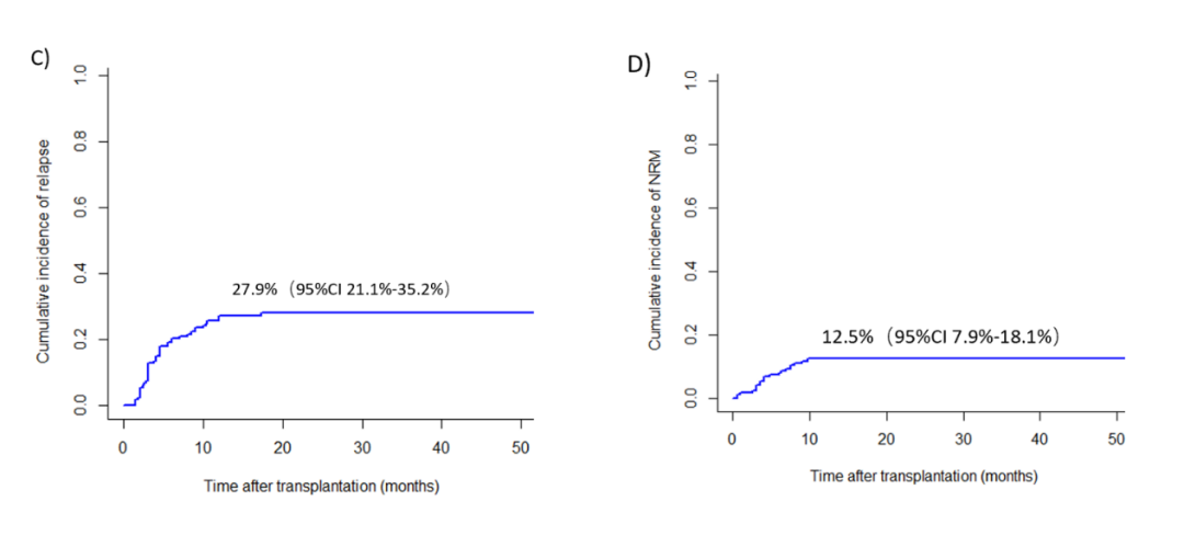 研究者观点:allo-HSCT可以克服FLT3-ITD突变AML患者的不良预后。起病时NPM1突变和FLT3-ITD等位基因比率均未影响患者生存。影响移植结局的主要预后因素包括移植前MRD水平和移植后进行维持治疗。因此,采用FLT3抑制剂进行移植后维持治疗,以及高灵敏度MRD检测手段的应用将进一步减少疾病复发并改善患者生存。